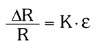 где, R: исходное сопротивление тензорезистора, Ω (Ом) Δ R: изменение сопротивления, вызванное удлинением или сокращением, Ω (Ом) K – коэф. пропорциональности (коэффициент тензочувствительности) ε – деформация (Δ L / L)
