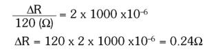 Коэффициент тензочувствительности K зависит от применяемых материалов. Для медно-никелевого сплава коэффициент тензочувствительности составляет примерно 2. Следовательно, тензорезистор, использующий данный сплав в качестве чувствительного элемента, позволяет преобразовывать механическую деформацию в соответствующее изменение электрического сопротивления. Однако т.к. деформации в пределах упругости достаточно малы, то и изменение сопротивления, вызванное деформацией чрезвычайно мало. Например, высчитаем изменение сопротивления на тензорезисторе при 1000 x10–6 деформации. При сопротивления тензорезистора равном 120Ω получаем: