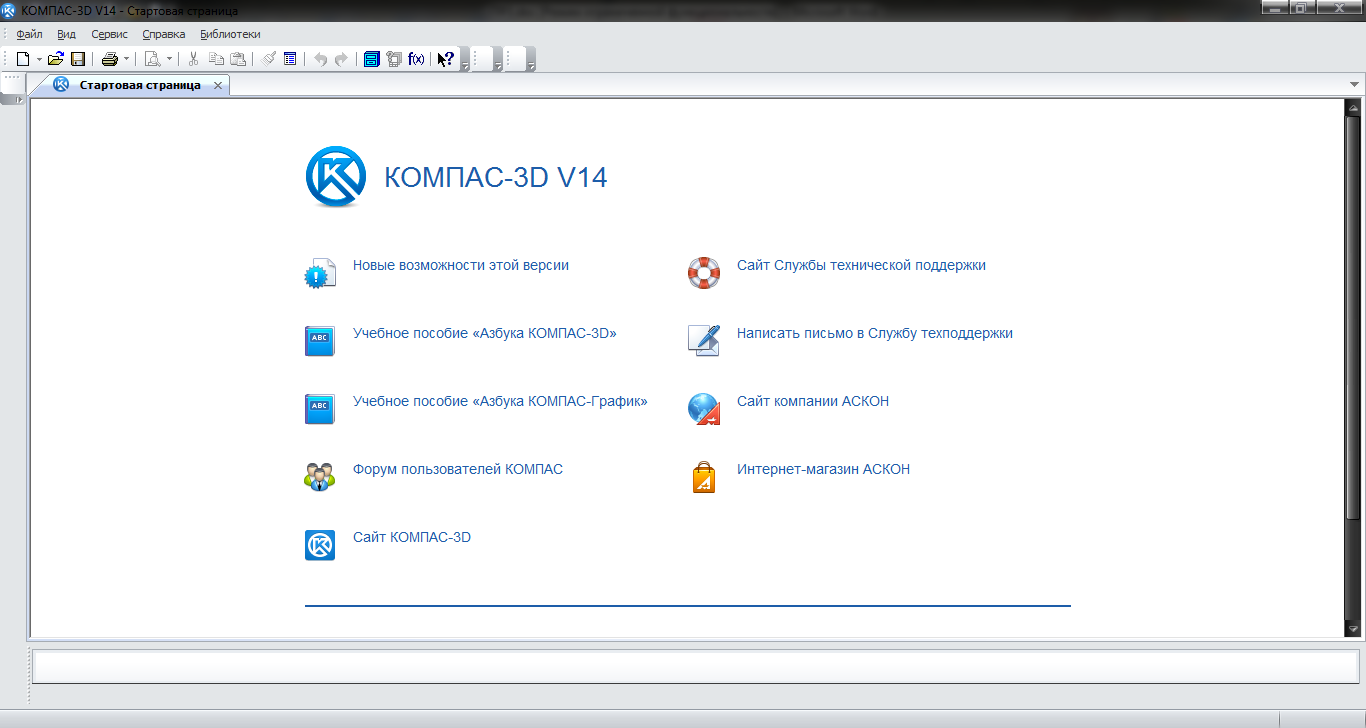Рисунок 1.1 - Стартовая страница КОМПАС 3D