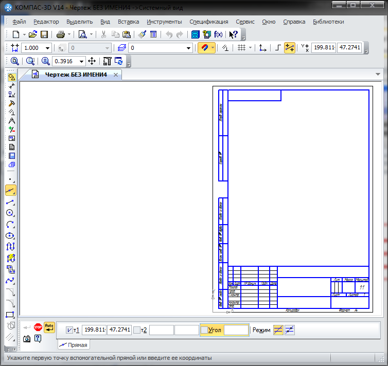 В диалоге Новый документ указываем тип создаваемого документа, в нашем случае это Чертеж и нажимаем кнопку ОК. В рабочем окне будет создан новый чертеж с параметрами по умолчанию: формат А4 вертикальной ориентации, стиль оформления Чертеж конструкторский. Первый лист. ГОСТ 2.104-2006. КОМПАС 3D – это программа для операционной системы Windows, поэтому её окно имеет те же элементы управления (рис. 1.4).