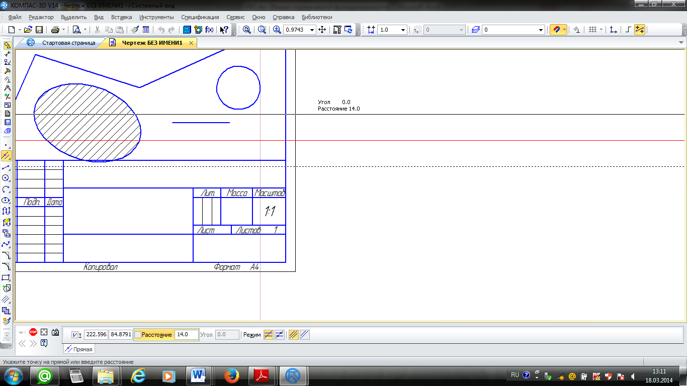 Команды панели Измерения (2D) выполняют различные сервисные функции: измеряют координаты точек, расстояния между точками, углы наклона отрезков, площади, периметры и т.д.