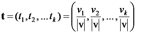 Пусть в Ek заданы некоторая точка V = (v 1, v 2, …, vk), единичный вектор t и непрерывно дифференцируемая по всем аргументам функция f (V) = f (v 1, v 2, …, vk). Производной в точке V от функции f (V) по направлению луча, определяемому вектором t, называется предел