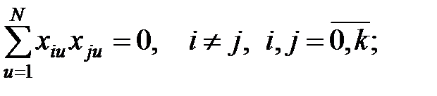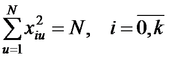 Существует несколько способов построения подобных матриц планирования. В частности можно воспользоваться приемом, характерным для записи последовательности двоичных чисел. В столбце последней переменной x 3 знаки меняются поочередно, в столбце предпоследней переменной x 2 – чередуются через два элемента, третьей справа переменной x 1 – через четыре элемента. Аналогично строится матрица для любого количества переменных, порядок перечисления переменных не играет роли. Столбцы с произведениями переменных вычисляются путем умножения значений элементов в соответствующих столбцах простых переменных. Из анализа матрицы планирования легко видеть, что полный факторный эксперимент обладает свойствами: ортогональности. Сумма парных произведений элементов любых двух различных столбцов равна нулю. В частности, для простых переменных симметричности. Сумма всех элементов любого столбца, за исключением первого, равна нулю, например, нормированности. Сумма квадратов элементов любого столбца равна числу опытов, так для i -й переменной Первые два свойства обеспечивают независимость оценок коэффициентов модели и допустимость их физической интерпретации. Нарушение этих свойств приводит к взаимной зависимости оценок и невозможности придания смысла коэффициентам. Включение в матрицу планирования переменных вида xi 2 приведет к появлению единичных столбцов, совпадающих друг с другом и со столбцом x 0. Следовательно, нельзя будет определить, за счет чего получено значение b0. Поэтому планы ПФЭ 2 k не применимы для построения функции отклика в виде полного полинома второй степени.