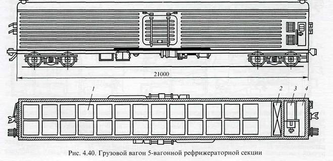 Грузовое отделение имеет мощную теплоизоляцию из пенополиуретана, внутреннюю обшивку и напольные решетки, а машинное отделение — только внутреннюю обшивку без термоизоляции и приборы, обеспечивающие заданный температурный режим в грузовом отделении. В машинном отделении расположены две компрессорные установки 3 типа ВР-1м с хладоном-12 и воздухоохладитель 2 производительностью 42 кВт. Температура в грузовых помещениях контролируется тремя способами: