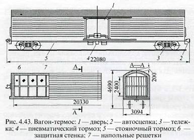 Пол состоит из двух слоев стеклопластика, между которыми находятся бумажные вертикальные сегменты (соты) с вспененным полиуретаном. Сверху пол покрыт многослойной фанерой толщиной 18 мм с наружным слоем биологически нейтральной резины. В грузовом помещении имеются оцинкованные стальные напольные решетки, а в полу по диагонали два устройства для удаления промывочной воды. Дверные проемы шириною 2, 7 м, высотою 2, 3 м закрываются дверями прислонного типа. Все холодильное и электрическое оборудование вагона работает автоматически и нТипы и размеры жд вагонов Транснаутик СПБ - Услуги и справки - Железнодорожные перевозки - Типы и размеры жд вагонов Перевозка грузов по железной дороге осуществляется различными типами подвижного состава. В зависимости от характера груза, конструкции кузова, способов погрузки и выгрузки, а также обеспечения сохранности грузов различают: крытые вагоны, полувагоны, платформы, цистерны, вагоны-самосвалы, вагоны бункерного типа и реф-вагоны. Крытый грузовой вагон используется для перевозки грузов, требующих защиты от атмосферных осадков. Кузов вагона представляет собой конструкцию, состоящую из рамы с полом, 4-х стен и крыши. Погрузка и выгрузка в универсальных крытых вагонах осуществляется через двери, расположенные в боковых стенах. Полувагон предназначен для перевозки грузов, не требующих защиты от атмосферных осадков. Так как полувагоны не имеют крыши, то это позволяет полностью механизировать погрузку. Для перевозки сыпучих грузов существуют полувагоны с люками в полу, который позволяют механизировать выгрузку таких грузов. Хоппер (англ. hopper - бункер) - разновидность полувагона, используемая для массовых перевозок удобрений, цемента, зерна и других сыпучих грузов. Для защиты от атмосферных осадков, применяются крытые хопперы с загрузочными люками на крыше. Платформа - вагон, применяемый для перевозки машин, оборудования, длинномерных грузов, контейнеров, а также сыпучих грузов, не требующих защиты от атмосферных осадков. Вагон- цистерна применяется для перевозки жидких грузов, сжиженных газов и порошкообразных материалов. Вагоны бункерного типа - по существу, крытые вагоны или крытые хопперы с той лишь разницей, что на одной раме смонтированы несколько емкостей, предназначенных для перевозки специфических сыпучих грузов (мука, нефтебитум, гранулированные материалы). Думпкар (англ. dump - опрокидывать, car - вагон) - вагон-самосвал. Он используется для перевозки и механизированной разгрузки сыпучих и крупнокусковых грузов. Основными техническими характеристиками грузового вагона являются: