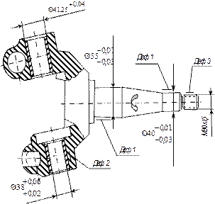 Дефекты: 1.Износ мест под роликовые подшипники. 2.Износ отверстий под втулки. 3.Повреждение и износ резьбы.