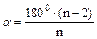 В правильному n–кутнику: Сума всіх кутів: 180°· (n – 2) Внутрішній кут: Зовнішній кут: Центральний кут: Сторона: Апофема: радіус вписаного кола r Радіуси опис. і впис. кола: