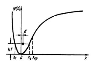 Рисунок 1. Потенциал парного взаимодействия атомов Потеря устойчивости кристаллической решетки может быть обусловлена либо тепловыми колебаниями (плавление) либо приложенной внешней нагрузкой. Тепловое расширение решетки связано со смещением центра масс из положения равновесия из-за ангармонизма δ (рис.2).