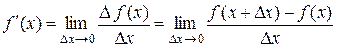 Функциональной зависимостью называется такая взаимосвязь одной или нескольких независимых переменных величин с некоторой, зависимой от них, переменной величиной, при которой каждому значению независимых переменных соответствует строго определенное значение этой зависимой переменной. Математическое выражение, устанавливающее вид взаимосвязи зависимой переменной с независимой, называется функцией и обозначается строчной латинской буквой f. Независимая переменная называется аргументом функции, и, как правило, обозначается строчной латинской буквой х, а зависимая переменная – у. Например, Производной функции называется выражение, характеризующее быстроту изменения функции при изменении ее аргумента. Например, если мы имеем функцию В общем случае производная функции определяется как предел отношения приращения функции Производная функции обозначается штрихом около символа функции