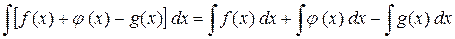4. Неопределенный интеграл от алгебраической суммы нескольких функций равен алгебраической сумме неопределенных интегралов от каждой функции в отдельности
