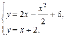 где a и b – абсциссы точек пересечения кривых. Для нахождения точек пересечения данных линий, решим систему уравнений: