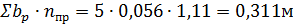 1. Расчёт клееной утеплённой плиты покрытия с фанерными Обшивками Конструкция плиты покрытия Каркас плиты состоит из пяти продольных рёбер сечением 144´ 56 мм (из досок 150´ 60 мм до острожки) и двух поперечных ребер на торцах плиты. Фанерная обшивка толщиной 8, 0 мм. Сверху на обшивку наклеивается один слой пергамина, с нижней стороны обшивка и ребра окрашиваются эмалью ПФ-115. Поперечное сечение плиты и расчетное приведенное сечение показаны на рис. l р= l п– bоп – δ =4, 0–0, 055–0, 015 =3, 93 м. где l п =4, 0 м – номинальная длина плиты; bоп =0, 055 м – ширина опорной части плиты; δ =0, 015 м – зазор между торцами плит. Расчётная ширина плиты определяется в соответствии с п.6.27 [1] в зависимости от шага продольных рёбер и длины плиты l п; в нашем случаи 6∙ а =6∙ 0, 356=2, 136 < l п =4, 0 м, следовательно: bрасч = 0, 9∙ bn =0, 9∙ 1, 48=1, 332 м. Приведенная ширина продольных ребер равна: bр.прив. = nпр = где Едр =1∙ 1010 Па – модуль упругости древесины вдоль волокон; Еф =0, 9∙ 109 Па – модуль упругости фанеры вдоль волокон; 1.3 Определение приведённых геометрических характеристик поперечного сечения плиты Приведённая площадь сечения: Fпр=bрасч∙ δ ф+bр.пр.∙ hр =1, 332∙ 0, 008+0, 311∙ 0, 144=5, 5∙ 10-2 м². Приведённый статический момент сечения относительно нижней плоскости плиты: Sпр=bрасч Координата центра тяжести сечения плиты относительно нижней плоскости: