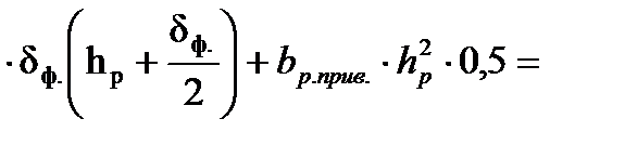 hп - y0 = 0, 152– 0, 087 = 0, 065 м Площади и координаты центров тяжести элементов поперечного сечения плиты относительно нейтральной оси: - фанерной обшивки: Fф.=bрасч.∙ δ ф.в .=1, 332 ∙ 0, 008=106, 56 ∙ 10-4 м² yф.= hп - y0 - = 0, 152 – 0, 087 – - продольных рёбер: Fр.пр.=bр.пр.∙ hр =0, 311∙ 0, 144=447, 84∙ 10-4 м²; yр.= y0 - – δ ф.н.= 0, 087– Приведённые собственные моменты инерции элементов поперечного сечения плиты: - фанерноей обшивки: Iф.= - продольных рёбер: Iр.пр.= Приведённый момент инерции сечения плиты: Iпр.=Iф.+Iр.пр.+Fф.∙ y² ф.+Fр.пр.∙ y² р .= 5, 683∙ 10-8 + 0, 774∙ 10-4 + 106, 56∙ 10-4 ∙ 0, 061² + +447, 84∙ 10-4∙ 0, 015² = 1, 27∙ 10-4 м4. Приведённый момент сопротивления сечения плиты: