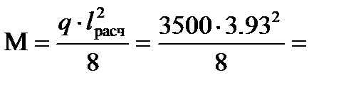 Расчётные значения внутренних усилий в плите определяем как в простой балке двутаврового сечения (рис. 1.2.) с пролётом равным lрасч =3.93 м нагруженной линейной равномерно-распределённой нагрузкой q =3500Н/м: