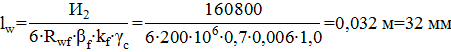 Расчет ведем по металлу шва потому, что выше полученная величина меньше единицы. Минимальный катет шва при сварке листа и круглого стержня: кf=1, 2∙ d=1, 2∙ 12=14, 4 мм. Учитывая что угловой шов накладывается на закругленную поверхность катет шва не должен превышать 0, 9 толщины круглого профиля кf≤ 0, 9∙ 28=25, 2 мм. Принимаем kf=16 мм. Расчётная длина шва по металлу шва определится по формуле 176 [3]: