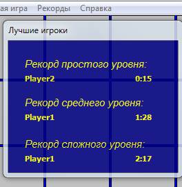 · При нажатии на вторую вкладку «Рекорды» показывает рекорды игроков на три уровня сложности,