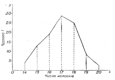 Рис. 8. Крива варіювання числа колосків у колосі пшениці