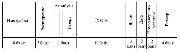 Пользователь может получить доступ к атрибутам, используя средства, предоставляемые для этой цели файловой системой. Обычно разрешается читать значение любых атрибутов, а изменять – только некоторые. Значения атрибутов файлов могут содержаться в каталогах, как это сделано, например, в MS-DOS (рис. 7.7). Другим вариантом является размещение атрибутов в специальных таблицах, в этом случае в каталогах содержатся ссылки на эти таблицы.