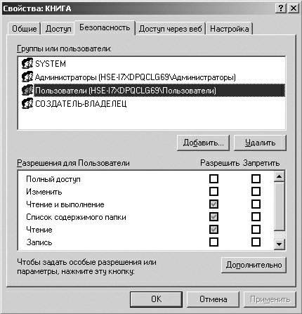 На рис. 7.25 показана возможность установки индивидуальных разрешений для файлов.