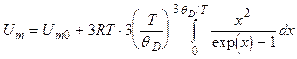 10. Молярная внутренняя энергия кристалла по Дебаю