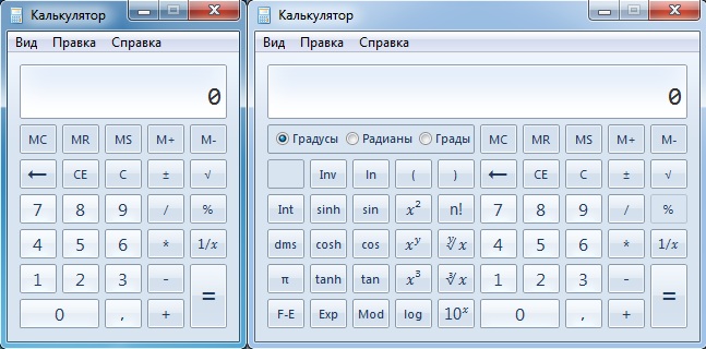 Рис. 10. Диалоговое окно Шрифты Карандаш предназначен для свободного рисования. Толщину линии можно выбрать в поле настройки инструментов. Кисть предназначена для свободного рисования подобно обычной кисти. Форму кисти можно выбрать, нажав на стрелочку снизу. рисуется от точки нажатия на клавишу мыши до точки, в которой мышь будет отпущена. При рисовании кривой сначала рисуется линия при помощи пиктограммы кривой, а затем ее можно искривить посредством " оттягивания" мышью. Используя поле выбора толщины линии, можно указать ориентировочно толщину линии на рисунке. Фигуры включают в себя прямые и кривые линии, прямоугольники, прямоугольники с закругленными углами, окружностиили эллипсы, многоугольники необходимо использовать соответствующие кнопки на панели инструментов. Для рисования квадрата и круга нужно удерживать клавишу Shift. Палитрав правой верхней части экрана показывает доступные для использования цвета. Можно выбрать любой цвет для первого и второго плана (фон). Для рисования какого-либо объекта, прежде всего, нужно зафиксировать указатель мыши на той из восьми представленных линий, толщина которой нужна для данной работы. Далее в палитре выбирается желаемый цвет левой кнопкой мыши. Фиксацией курсора на пиктограмме инструмента на левом краю экрана устанавливаете, чем будете работать. Используя левую клавишу мыши, работаете выбранным инструментом. Если результаты выполняемого действия вас не удовлетворяют, то отменить результаты рисования можно, используя сочетание клавиш Ctrl+Z. Это действие возможно до тех пор, пока результаты работы не зафиксированы. Фиксация выполняется автоматически при выборе другого инструмента или при использовании линейки прокрутки. Все выделенные области можно подвергать дальнейшей обработке. Можно сделать копию замаркированной области при помощи функции Копировать. Копия попадет в буфер промежуточного хранения оболочки Windows. Копию можно вставить в тот же самый рисунок, а можно перенести на чистый лист или в текстовый файл. Для вставки вырезанного фрагмента вводится команда Вставить. (Для вставки в другой графический файл используется команда Вставить из...). Вставка появляется в левом верхнем углу рабочего поля. Ее нужно переместить мышью на место пока существует маркировочная рамка. Операции из меню Повернуть или отразить применяются для того чтобы преобразовать фрагменты иллюстраций особым образом, а именно: сделать их зеркально отраженными, инвертированными или повернутыми на определенный угол. В меню Файл существуют стандартные для всех Windows-приложений пункты: Создать, Открыть, Сохранить, Сохранить как…, Печать, при помощи которых рисунки записываются в файл на диске, считываются из файла или выводятся на печатающее устройство. Калькулятор (Calculator). Калькулятор в Windows существует в четырех вариантах: обычный, инженерный, программист, статистика. Их вид представлен на рис. 11. Обычный Калькулятор представляет собой простой стандартный калькулятор, выполняющий главные арифметические операции. Однако при необходимости при помощи меню Вид можно вызвать остальные его варианты: · инженерный калькулятор, который позволяет, кроме арифметических операций, выполнять и вычисление функций; · программистский, который позволяет переводить числа между системами счисления с основа