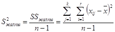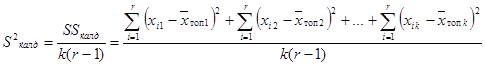 мұ ндағ ы SS факт - орташа квадраттық ауытқ улардын факторлық қ осындысы, k - фактор дең гейлерінің саны; r - ә р топтағ ы мә ндер саны; Қ алдық дисперсия (S2қ алд) – бұ л орташа шамалардың ө згеруіне ық пал етпейтін, кездейсоқ себептер ә серінен ғ ана болатын дисперсия: