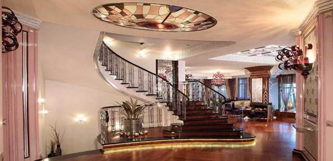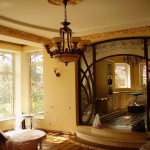 Освещение в любом помещении играет большую роль, особенно если речь идет об интерьере модерн. Важен вид осветительных приборов, их декоративность и сочетаемость с общим стилем, а так же расположение источников света в помещении. Расположение осветительных приборов Для создания полноценного стиля необходимо установить два вида освещения – функциональное и декоративное. Декоративное освещение необходимо для выделения одной или нескольких частей декора помещения, для придания акцента и перефокусировки внимания с одного объекта на другой. С помощью декоративного освещения можно исправить ошибки в создании интерьера, усиливая акцент на активные цветовые элементы и отдельные части декора. Функциональное освещение имеет свои подвиды, которые определяют требования и цель. В зависимости от целевого назначения функциональное освещение может быть: Основным. Настенные и напольные лампы, точеные светильники цель которых – освещение всего помещение за счет отражения света от плоскостей помещения. Фоновым. Потолочный приглушенный рассеянный свет, для освещения всей площади. Основная задача фонового света – исключить затемнения в дальних углах, расположенных за выступающими рельефными объектами. Целевым. Осветительные приборы, которые устанавливаются для освещения одной функциональной зоны с помощью узконаправленных лучей. Особенности цветовых гамм и большое количество объектов с высокой фактурностью, объемностью и выступающими формами, которые используются для создания радикального модерна, требуют грамотно расположенного освещения. Масштабно-декоративное и поверхностно-облегченное исполнения интерьера в стиле модерн требует не меньше работы с освещением для создания полноценной картинки. По основам правил устанавливается три источника света. Первый вид освещения – основной, устанавливается на потолке, в центре помещения. Второй – основной, располагается чуть выше уровня глаз по периметру. Третий – фоновый, устанавливается ниже уровня колена для освещения затемненных углов. В виде дополнительного декоративного освещения можно сделать в стене макет окна, выполненного в стиле модерн, за которым устанавливается рассеянное освещение теплого солнечного цвета, для создания цветных элиминаций. Стилистика осветительных приборов