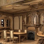 Для меблировки помещения оформленного в данном стиле используется только необходимая мебель. По принципу минимализма, выбирается только та мебель, которая имеет функциональное назначение в помещении. Расположение мебели соответствует требованиям самых изысканных классических стилей: меблируется центр комнаты, оставляя максимум пространства у стен. Деревянная мебель Дерево максимально подходит для стилистики, однако необходимо учесть ряд обязательных правил. Во-первых, цвет и текстура дерева, из которого изготовлена мебель, должна повторять оттенок других деревянных элементов декора. Так же следует помнить, что в классическом исполнении стиля любая мебель имеет обтекаемые природные формы с несимметричным рисунком. Самый простой способ – выбрать мебель близкую к классическому стилю, отличающуюся причудливой формой. Модерн очень гибкий стиль, располагающий к экспериментам. Деревянная мебель может иметь формы, которые ближе к стилю минимализма. В таком случае необходим очень выразительный декор, витиеватые пестрые узоры или декорирование стеклом. Часто мебель используется как часть цветовой гармонии. В таком случае основная крупная мебель побирается в тон к фоновому цвету, а уравновешивает её пестрый контраст с мелкими элементами меблировки по гамме соответствующие самому яркому цвету интерьера. Мягкая мебель
