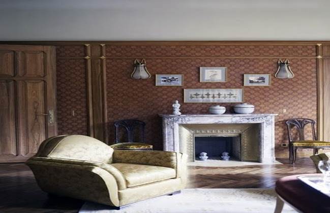 Текстиль – дополняющий материал, который используется в очень ограниченном количестве и четко по назначению. Портьеры, обивка для мягкой мебели и мелкие аксессуары, такие как диванные подушки и вышивка. Тяжелая и дорогая ткань для штор, которые дополняют оформление интерьера в стиле модерн, как правило, простой геометрической формы, четко подобранная в тон к цвету стен. В редких случаях шторы могут брать на себя роль цветового акцента, однако это выходит за приделы классического оформления стиля модерн.Подушки и обивка для мебели редко выступает в виде активного цветового элемента. Цвет ткани максимально дополняет и уравновешивает цвет мебели. Если в оформлении интерьера не достаточно изгибов, волнистых причудливых модернистских форм, то можно использовать ткань с узорами животного и растительного мира, выполненными в виде тонких одноцветных линий без резких, ярких цветных объектов. Цвета По мнению опытых дизайнеров, цвет определяет атмосферу в помещении. Для создания интерьера в стиле модерн используются практически все цвета, основной акцент отводится оттенкам, которые должны быть мягкими и забеленными, будь то посыпанные пеплом. Такой цветовой эффект демонстрирует размеренность, спокойствие, свойственные мягкому интерьеру в стиле модерн. Выбор цвета подразделяется на три этапа: Определение фонового (доминирующего) цвета. Выделение активных цветовых элементов декора. Дополнение цветовых текстур для закрепления стиля. Фоновые цвета