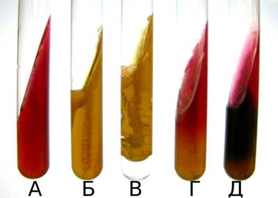 50. Выберите изображение пробирки со скошенным агаром (среда Клиглера)соответствующее росту S. typhi А Б В Г Д +?