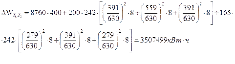 Вывод. В проекте рассмотрено 2 схемы для дальнейшего рассмотрения в которых все генераторы подключены по блочной схеме с распределение блоков: к ОРУ среднего 2 блока, с ОРУ высокого блока. В обоих вариантов для связи РУ ВН и СН установлены 2 АТС. Вариантах на шинах среднего напряжения значительный избыток мощности; дифицит мощности что приводит к значительному перетоку мощности и необходимости выбора мощных АТС; в варианте к АТС - обмотки НН подключен генератор данный вариант исключаем поскольку значительно перегружается обмотка ВН АТС такой вариант не желательный; применение укрупненного блока снижает стоимость силовых трансформаторов и их количество и упрощает схему РУ но такая структурная схема целесообразна при большом количестве блоков. Технико-экономическое сравнение вариантов схем Для каждого варианта структурной схемы проектируемой электростанции определяют: капиталовложения в ту часть проектируемого объекта, которая связана с варьируемыми присоединениями структурной схемы; потери энергии в трансформаторах за расчетный год; математическое ожидание недоотпущенной генераторами в систему электроэнергии M(∆ Wг) из-за отказов в элементах структурной схемы и ущерб. Затем на основании этих основных показателей по формуле вычисляют значение целевой функции приведенных затрат З, которая дает комплексную количественную оценку экономичности и надежности сопоставляемых вариантов структурной схемы. Расчетная стоимость трансформатора характеризует полные капитальные затраты – ее определяют умножением заводской стоимости трансформатора на коэффициент γ, учитывающий дополнительные расходы на его доставку, строительную часть и монтаж. Значение этого коэффициента зависит от уровня высшего напряжения, мощности и исполнения трансформатора и лежит в диапазоне от 1, 3 до 2, 0. В расчетную стоимость ячейки входит не только стоимость электрических аппаратов присоединения (выключателя, разъединителей, трансформатора тока, ошиновки), но и стоимость строительно-монтажных работ. Надежность сравниваемых вариантов структурной схемы обычно неодинакова. Поэтому приведенные затраты надо рассчитывать по полной форме включая ущерб от ненадежности структурной схемы. Для каждого варианта структурной схемы районной электростанции рассчитываются недоотпуск электроэнергии в систему и соответствующий ущерб от отказов трансформаторов (автотрансформаторов) блоков. Последствия от нарушения связи между РУ ВН и РУ СН учитывают лишь в тех случаях, когда они выражаются в аварийном снижении мощности энергоблоков или нарушении электроснабжения потребителей сети СН. Технико-экономический расчет заключается в нахождении расчетных приведенных затрат: З= где К– капиталовложения в трансформаторы, автотрансформаторы и ячейуи РУ; И – издержки на обслуживание и амортизацию и потери в силовых трансформаторах; У – ущерб от недоотпуска электроэнергии.