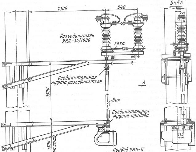 Секційні роз’єднувачі контактної мережі представляють собою апарати, що забезпечують електричне з’єднання (або роз’єднання) окремих ділянок (секцій) мережі один з одним та з живлячими проводами, що підводять електроенергію від тягових підстанцій. Перемикають секційні роз’єднувачі спеціальними приводами, що приводяться в дію вручну та дистанційно (на відстані). Секційні роз’єднувачі монтують на спеціальних кронштейнах так, щоб довжина приводних тяг була не більше 5м при постійному струмі і не більше 3.5-4м при змінному. Необхідно слідкувати за тим, щоб в безпосередній близькості від дугогасильних рогів роз’єднувача і особливо над ними не було ніяких заземлених елементів, на які могла б перекинутись електрична дуга, що виникає при його відключенні. Відстань від частин роз’єднувача, що знаходяться під напругою, до найближчих елементів опори повинна бути не менше 0.8м при постійному і 1м при змінному струмі. Секційний роз’єднувач з приводом необхідно встановити на опорі і підключити. Конструкцію для кріплення роз’єднувача і привода виготовляють в майстернях. Встановлення секційного роз’єднувача змінного струму починають з закріплення на опорі кронштейнів. Потім за допомогою поліспаста на 0.5т роз’єднувач піднімають на опору, закріплюють на кронштейнах та приєднують вал. Після цього секційний роз’єднувач декілька разів вмикають, перевіряючи надійність контакту.