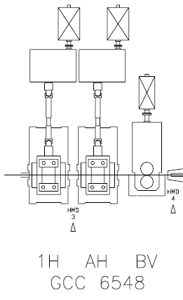 Прокатка металла на стане ведется в автоматическом режиме с помощью АСУ DMC 2000. Система DMC 2000 непосредственно соединена с приводами двигателей с помощью локальной вычислительной сети участка и выполняет регулирование с обратной связью по скорости всех прокатных устройств на основании соответствующих уставок, заданных оператором стана с автоматизированного рабочего места оператора (АРМО). Система АСУ DMC 2000 осуществляет контроль и регулирование натяжения между клетями стана, работающими в режиме минимального натяжения (между клетями №1-В; №2-№5; №6-№11 и №12-№13), а также контроль и регулирование петлеобразования в межклетьевых промежутках при прокатке металла в клетях с №14 по №17 предчистовой группы (рисунок 1.1). Уставки минимального натяжения и оптимальной высоты петли задаются в систему АСУ ТП оператором стана с ПУ-1. Для предотвращения «биения» во время выхода хвостовой части прутка из клети, расположенной перед петлеобразователем, высота петли при подходе заднего конца раската к данной клети постепенно уменьшается вплоть до полного исчезновения в момент, когда хвостовой участок проката покидает прокатную клеть. Прокатка в обжимной группе осуществляется в режиме непрерывной прокатки в одну нитку. После прокатки в обжимной группе раскат, при помощи стрелки поочередно или согласно определенной уставки, направляется по правой или по левой нитке промежуточного сдвоенного рольганга, оснащенного теплоудерживающими крышками. Наличие раската по ниткам отслеживается при помощи датчиков горячего металла. С промежуточного рольганга раскаты задаются в две нитки клети №2 черновой группы. В черновой группе прокатка производится в четырех клетях горизонтального типа. Кантовка раската производится посредством кантующих роликов выводных проводок. После клети №5 черновой группы по каждой нитке установлены кривошипные ножницы, предназначенные для обрезки переднего и заднего конца, а также аварийного реза раската. Ножницы должны быть настроены таким образом, чтобы окружная скорость режущей части была незначительно больше скорости раската. После ножниц раскаты задаются в промежуточную группу. Первая промежуточная группа состоит из шести клетей горизонтального типа. После клети №11 по каждой нитке установлены летучие ножницы, предназначенные для обрезки переднего, заднего конца и аварийного реза раската. После выхода из первой промежуточной группы раскат прокатывается во второй промежуточной группе, состоящей из двух клетей горизонтального типа. После второй промежуточной группы происходит разделение технологического потока на левую и правую стороны стана, оборудование которых имеет идентичное расположение. В дальнейшем, прокатка ведется в предчистовой группе стана, состоящей из четырех клетей, последовательно расположенных в горизонтальном и вертикальном положении. На участке перед предчистовой группой располагается горизонтальный петлеобразователь, который обеспечивает отсутствие натяжения между второй промежуточной и предчистовой группами. Между всеми клетями предчистовой группы расположены вертикальные петлеобразователи для обеспечения минимального межклетьевого натяжения. Величина натяжения между клетями регулируется при помощи датчика петли. После предчистовой группы промежуточный раскат про