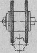 Рис.4. Способы шлифования шлицев. а - фасонным кругом; б - в две операции - одним и двумя кругами; в - тpeмя кругами. Если шлицевые валы после чернового фрезерования прошли термическую обработку в виде улучшения или закалки, то после этого они не могут быть профрезерованы начисто; необходимо шлифовать по поверхностям впадины (т. е. внутреннему диаметру) и боковых сторон шлицев. Наиболее производителен способ шлифования фасонным кругом (рис. 4 а), но при таком способе шлифовальный круг изнашивается неравномерно ввиду неодинаковой толщины снимаемого слоя у боковых сторон и впадины вала, поэтому нужна частая правка круга. Шлифовать шлицы можно в две отдельные операции (рис. 4, б); в первой шлифуют только впадины (по внутреннему диаметру), а во второй боковые стороны шлицев. Для уменьшения износа шлифовального круга после каждого хода стола вал поворачивается и, таким образом, шлифовальный круг обрабатывает впадины постепенно одну за другой Обычно вал поворачивается автоматически после каждого двойного хода стола станка. Но такой способ шлифования менее производителен, чем первый. Для объединения двух операций шлифования в одну применяются станки, на которых шлицы шлифуют одновременно тремя кругами