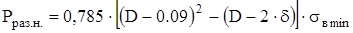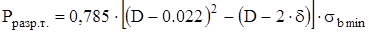 Для труб типа ОГ с толщиной стенки 11 мм и более разрушающую нагрузку определяют исходя из прочности муфтовой части по формуле: