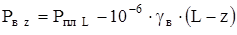 - внутреннее давление определяют, для процессов, в течение которых оно достигает максимальных и минимальных значений (испытание на герметичность, опробование, эксплуатация и ремонт скважин). Внутреннее давление достигает максимального значения в период ввода скважины в эксплуатацию (при закрытом устье) или при нагнетании в скважины жидкостей для интенсификации добычи, а также при ее испытании на герметичность. Минимальные; значения внутренних давлений обычно имеют место при окончании эксплуатации скважин, для случая полного замещения жидкости в скважине пластовым флюидом, для процесса испытания колонн на герметичность снижением уровня. Внутреннее давление определяют следующим образом: - в период ввода в эксплуатацию при закрытом устье, (риc. 6.1.a Ру > 0)