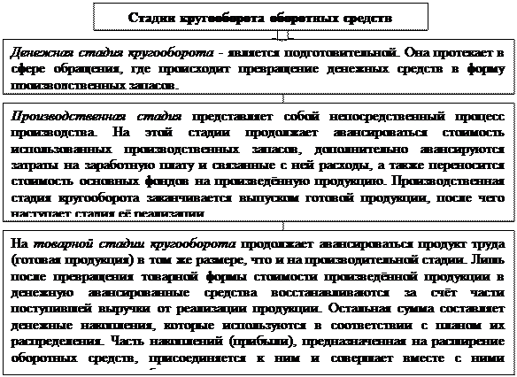 Рисунок 10.1.2. Стадии кругооборота оборотных средств организации.