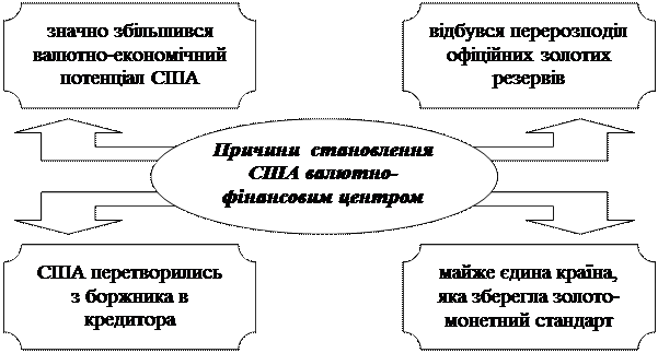 Під впливом закону нерівномірності розвитку в результаті першої світової війни валютно-фінансовий центр перемістився з Західної Європи до США.