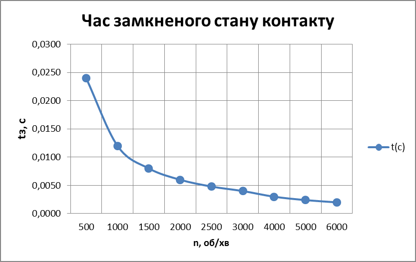 Рисунок 3.3 Залежність замкненого часу контактів від частоти обертання колінчатого вала