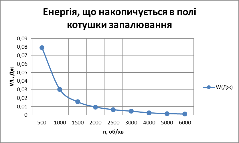 Енергія, що накопичується в полі котушки запалювання (енергія іскрового розряду) без урахування витрат у вторинному колі системи залежить від струму розриву