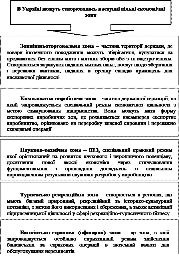 Фінансові умови функціонування вільних економічних Зон в Україні Метою створення спеціальних (вільних) економічних зон є залучення іноземних інвестицій та сприяння їм, активізація спільно з іноземними інвесторами підприємницької діяльності для нарощування експорту товарів і послуг, поставок на внутрішній ринок високоякісної продукції та послуг, залучення і впровадження нових технологій, ринкових методів господарювання, розвитку інфраструктури ринку, поліпшення використання природних і трудових ресурсів, прискорення соціально економічного розвитку України.