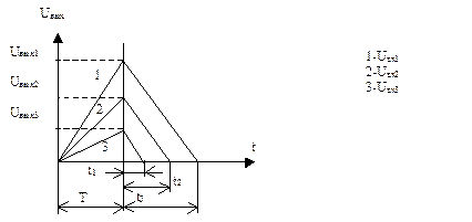У схемі використовується принцип перетворення напруги в тривалість імпульсу з наступним виміром тривалості імпульсу. Принцип роботи схеми пояснюють часові діаграми, представлені на рис. 1.3.
