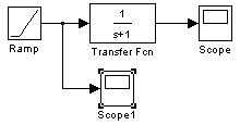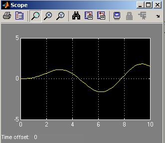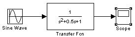 Fig.4.10 The transfer function of the control system in question and its response to the sine wave input signal This input signal may be represented in the following forms: