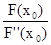 называемую формулой метода касательных. Заметим, что если в рассматриваемом случае (F’(x) > О, F”(x) > О, F(b) > 0, F(а) < 0) касательную провести в точке А, то есть положить x0 = а, то точка пересечения ее с осью абсцисс может оказаться вне отрезка изоляции корня [a; b]. Это значит, что метод касательных неприменим, если в качестве начальной точки x0 выбрать такую, в которой F(x0) ´ F”(x0) < 0. Как и в методе хорд, можно доказать (предлагаем читателю сделать это самостоятельно), что полученная числовая последовательность x0> x1> x2>...> xn> xn+1>...> a сходится к корню уравнения х *. Для оценки погрешности приближения xn можно воспользоваться, как и в методе хорд, формулой ½ x* - xn½ £ ½ xn - xn-1½ £ e. Анализируя возможные расположения кривой у = F(х)на отрезке изоляции, где последовательные приближения по методу касательных обозначены F(x0) F¢ ¢ (x0) > 0