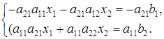 Если a11a22 - a21a12 Аналогично, умножая первое уравнение системы (1) на —a21, второе — на а11 и складывая их, получаем: