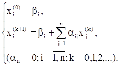 и назовем ее системой нормального вида. Будем решать ее методом последовательных приближений. За нулевое приближение возьмем, например, столбец свободных членов
