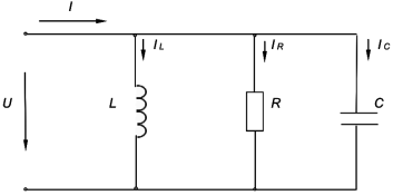 Рис. 2.2.3. Паралельне з’єднання активного опору, індуктивності і ємності