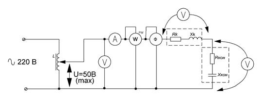 1). Ознайомитися з робочим місцем. 2). Зібрати схему згідно рис. 2.3.6. Оскільки напруга на окремих ділянках кола в режимі резонансу перевищує напругу мережі, остання при проведенні досліду повинна бути обмежена за допомогою автотрансформатора до 50 В. 3). Змінюючи ємність конденсаторів домогтися настання режиму резонансу. Режим резонансу можна визначати за показами фазометра ( 4). Підтримуючи автотрансформатором напругу на вході кола незмінним, виміряти величини, вказані в таблиці 1(5-7 вимірювань, у т.ч. 2-3 в індуктивному режимі, 2-3 у режимі ємності і 1 - в режимі резонансу).