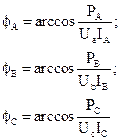де P1 і P2 - свідчення ватметрів. У чотирьох дротяний системі потужність вимірюється за допомогою трьох ватметрів (рис. 2.6.4). Коефіцієнт потужності в кожній фазі обчислюється окремо, наприклад, у фазі А