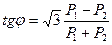де U і I - діючі значення лінійних напруги і струму. Потужність (активна і реактивна) вимірюється методом двох ватметрів (рис. 2.7.4). Тангес кута зсуву фаз між напругою і струмом також визначається за показами ватметрів